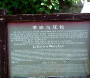 桃花潭豪士汪伦邀请李白的信云:“此地有十里桃花,万家酒店。”李白欣然应邀,却不见桃花酒店,汪伦解释说:“十里桃花是指十里处有桃花渡,万家酒店,是说潭边有姓万的酒肆”。