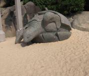 分界洲岛离三亚八十多公里,但有免费班车可乘还算方便。岛上的海洋剧场值得一看,有海豚和海狮的精彩表演。化八十元钱可以喂海豚,並可以摸它的,化三十元钱可以喂海龟,总之我们玩得很开心。