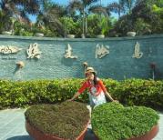蜈支洲岛因为地点离市区较远,来之前还在犹豫是不是浪费时间,结果到岛上以后就会觉得不虚此行,真可以用鸟语花香来形容,海水比亚龙湾还清澈。我们坐的电瓶车150元的,包含全部景点可以绕岛一周。有些人工的景点看看也罢,印象最深的是三角梅林。但是岛后面不坐电瓶车走不到的地方还是值得一看的,岛靠码头一边是白沙,海水清澈,越往岸边颜色越浅,大海深处到岸边颜色依次是深蓝浅蓝浓绿淡绿直到透明,而且水竟然是静止的,凝固的,象一块巨大的天然的宝石。