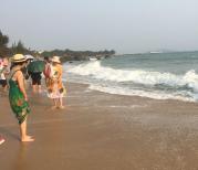 天涯海角的门票是在网上购票的,太方便了,直接在散客通道进,人很少,不用排队,扫二维码就可以直接进园,天涯海角真的值得进去玩一天,里面还是很大,我们是下午从西岛直接去的,到时候都是5点了,但是人还是很多,进去一定要坐电瓶车,因为进去还有那么远,一直坐到最里面,然后走到天涯海角那块石头,照相的人很多,要排队。我们就在旁边远远自拍了一个,然后再沿着海边往回走,天涯海角这边海也很美,浪大,可以捡很多贝壳,可以站在海边的大石头上照相,景色很美,里面还有多景点,拍照,进去看到很多照婚纱照的