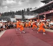 看了南少林点评本来要放弃的 小的一定要去 盘山半小时 景色果然很普通 刚停车 一群阿婆上来兜售香烛 热闹程度和点评不大一样 看得出寺庙在扩张 进门后发现武术学校有表演 还真精彩 当天有三场 南武僧的传说真是名不虚传啊!