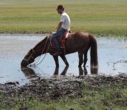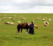 乌兰布统草原开阔,牛羊成群,对于城市的小孩子,很少能够看到这么多一群一群的牛羊!很兴奋,还可以骑骑马,亲近亲近动物,本来想让他们看看奶牛挤奶的,可是玩了三天都没找到!有点小失望!