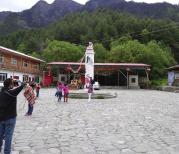 林芝南伊沟风景区内是以冷杉云杉为主的原始森林,临近中印边境,进景区要经边防检查。坐景区观光车一路20多公里,观看各个景点,有珞巴族居住的自然村。最后在高原牧场的地方停下,可走森林栈道观看远处的雪山---中印的麦克马洪线。