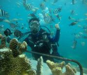 去蜈支洲岛第一次潜水,总体感觉还可以,就是潜水教练的拍照技术太差,而且为了凑数满十张,还给我拍了很多水面多照片,放几张差图上来……白沙和海水确实不错,坐个快艇或者摩托艇海上兜风感觉很好。潜水排队人很多,而且不是出海潜水,在一个划定的圈子里面,鱼不多