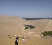 放假来到敦煌市郊的著名景点——鸣沙山月牙泉,进入景区就进入了沙漠,骑骆驼走沙漠,感觉不错,还可以玩滑沙等游戏。还有就是鸣沙山白天游客玩耍把沙子滑到下面,感觉千军万马,鼓声震震,夜里在风的作用,在回到坡上,月牙泉沙漠奇迹。