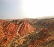 进入七彩丹霞景区,你就被眼前的风景震撼啦!太美啦!数以千计的悬崖、山峦呈现出鲜艳的丹红色和红褐色,特别是在阳光的照耀下,各处造型奇特的山地丘陵色彩斑斓、气势磅礴,风景非常独特。