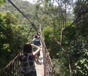 从市区过来亚龙湾热带天堂森林公园还是要蛮久的,景区取票方便,标识明确有专门的网络取票处。景区内,电瓶车很方便,因为整个景区还是很大。鸟巢宾馆跟雨林宾馆,有兴趣可以尝试住一下。这样就可以免了门票。索桥的收费,本人觉得还偏贵。而且线路不长,上面人很多,拍照的要等很久。可以看到亚龙湾全景,因为当天可见度并不高,所以只看了一个轮框。
