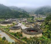 南靖河坑土楼群建在群山之间,溪水环绕,绿树葱葱,在观景台上观看北斗七星河坑土楼群,蔚为壮观,整个景区还没有被完全开发,很是清幽。