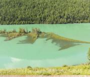 卧龙湾属于喀纳斯景区中的一个小景点,由于形如一个卧龙而得名,旁边的像是一大一小两只鳄鱼形状