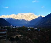 雅鲁藏布大峡谷景区有三个观赏南迦巴瓦峰地点,一个是快到景区入口的岗派公路边,再就是景区内大巴车第2个和直白村观景点。但号称中国最美雪山的南迦巴瓦峰经常是犹抱琵琶半遮面,要看到全貌是需要运气的!我们有幸在进景区的路边看到全貌,果真是高大巍峨,令人震撼!