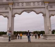 成吉思汗陵位于鄂尔多斯市,我从包头出发坐了好远的车,到了内蒙古才感觉到什么叫地广人稀,一路颠簸就是为了瞻仰一下这位大漠苍狼,现在的成吉思汗陵是他的衣冠冢,与他陪葬的是他的大弓和马鞍,进入正门首先能看到元朝时中国的版图,这方面让人感慨到今不如昔。不过印象最深的还是成吉思汗的守灵人,导游说成吉思汗墓前的长明灯世世代代没有灭过,这个家族是部落里选出世世代代都做守陵人,过去由族人供养,今天是国家给发补助,无论怎样,有这样的人存在也对得起一代枭雄!