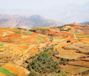 东川红土地包括打马坎看日出,落霞沟,锦绣园七彩坡,乐谱凹,老龙树等景点。2月底在昆明参加一日游,一辆商务车从昆明出发,按照最佳路线逐一游玩主要景点。虽然不是最佳季节,也有本季的美。落霞沟最漂亮。