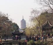 鼋头渚一个环湖公园,门票包含一张游船票。直接登船上岛。那个岛不大,一圈下来也没多长时间。不满意的事上个厕所还要爬那么高。我们是一日游。上岛之后是自由活动。所以大家基本上都歇歇,。喜欢玩水的可以下去踩踩水。但是不能游泳。从岛上下来,开始游园。如果让我自己逛的话,估计逛不了那么长时间,一会儿就会出来了。公园还是蛮漂亮的。