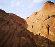 波浪谷正在开发中,区域很大,必游1丶3号区,5号区可选择,2号正在施工不能进,4号很小可放弃。全免费,1号区由当地人开车带进,最佳时间是早上6点游到9点,看到高原日出和朝霞中的峡谷,非常壮观。谷底有沼泽芦苇,有仅容一人侧身而入的一线天波浪峭谷。