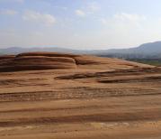 波浪谷的岩石叫红砂岩,靖边波浪谷在陕北这个黄土覆盖的地方能有这样的石头景观真是个奇迹了。那些层层叠叠的石头就像一大批铺盖在地面上浸染过后晾晒的红色布匹,一层层、一卷卷、一盘盘在夕阳的渲染之下,异常的鲜红。