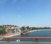 环岛路西起始厦大白城沙滩,沿海经过胡里山炮台、曾厝垵浴场、音乐广场、书法广场、白石炮台遗址、太阳湾浴场,礁石滩,黄厝段的石头广场;这次我们从胡里山炮台出来,来到环岛路木栈道,走了一段木栈道。