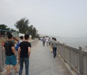 厦门环岛路值得一去,在上环岛木栈道之前,到栈道下面的沙滩玩了一会。木栈道只有前面一小段为木制的,其余都是石质的。木栈道可以看到进入胡里山炮台部分,沿途行走了两三公里,木栈道越来越窄,最窄的路段只能容下两人并排行走,一边悬空于大海之上,一边是高墙。终于走完了最窄的一段木栈道,眼前路面霍然宽广,这才发现高墙之上都是海景别墅。沿木栈道又走了20分钟,到达珍珠湾。这里依然是白沙滩,只不过没有厦大白城浴场里的沙滩白喔,不过海边的绿地公园很漂亮。