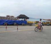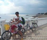 专门走了环岛路,其中有一段的海滩,海水天空相连,非常美丽,真不亚于澳洲和其他海滩。一路骑啊骑,游玩了曾厝安,又去了椰风寨,到了一国2制,不是自行车不灵光,肯定能到会展中心,听说那是最美丽的,马拉松的起点。