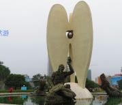 北海的商贸中心,北部湾广场位于四川路与北部湾中路和北部湾西路的交叉口。广场四周高楼林立,交通方便,有1、2、3、5、6、、9、12、13、15、16号9条公交线路直达。 一走近广场就被大榕树下的歌声吸引,一群文艺爱好者自拉自唱的、配乐合唱的,翩翩起舞的,热闹非凡,我们还以为在演出呢。观看的人群围着一个圈,兴趣很浓,气氛很热烈。广场中央的【南珠魂】珠贝雕塑造型高大、含义十分深远:大贝壳孕育了一流的中国南珠,北海是中国第一颗海水珍珠诞生地。北海南珠在2014年已被国家认定为:“中华人民共和国地理标志性保护产品”,合浦南珠是北海的传世名片,享誉海内外。《大海精灵之珍珠姐妹》动漫片就是以中国北海南珠为