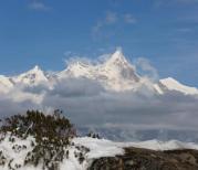 南迦巴瓦峰曾被选美中国评为最美山峰第一名! 能看到她的曼妙身姿是要靠人品加上运气的,通常她会躲在云雾后面,需要我们守在海拔很高的地方耐心等待着,风儿轻轻吹过,云朵慢慢地飘...然后她羞涩的拨开云雾对我们眨一眨眼...几分钟后再躲起来,乐此不疲!