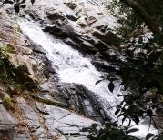太平山从南国夏宫再上山,经过一组瀑布群,名曰太平飞瀑。远看水流非常急,近看水质清澈。水温清凉,甘甜可口。瀑布边的石头非常坚硬整齐,有火山岩石的感觉。