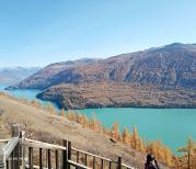 区间车去观鱼台,20多分钟的车程,路上看见远处雪山顶上皑皑的白雪,下了区间车要爬1068级的木质台阶,才能够到达观鱼亭,台阶不太陡,有好几处观景台,可以看到喀纳斯湖不同的角度。