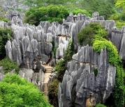 顾名思义,所谓石林就是石头形成的树林。位于云南石林县,是喀斯特地貌的精华。方圆几百平方公里内,怪石遍布。有的像人,有的像动植物。各种奇形怪状的石头集中在一起,十分壮观,堪称鬼斧神工。