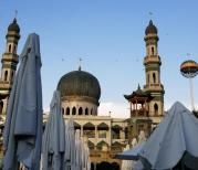 晚饭后开车路过东关清真大寺,也可以进去,简单参观了一下,很大,旁边有部分还在修缮,院子里有人在讲话,围了一群人,再往里走有人还在朝拜。