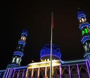 东关清真大寺离我们住的莫家街民宿很近,晚饭后步行到这里,晚上男信徒在礼拜,他们身穿白色衣服,头戴白色小帽,干净而严肃。走进寺里,听到吟唱,空灵极了。寺外夜景极美拍照留影。桌布是在寺外的小商店淘的 ,一张布,一个同花色的包35元。