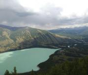 观鱼台美呆了,天空晴朗,飘过一块云彩居然下雪了,不到观鱼台等于没来喀纳斯。