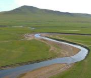 莫日格勒河是一条河道十分狭窄,但却极度弯曲的河流.如果从空中俯瞰,蜿蜿蜒蜒的河水,就象是一条被劲风舞动着的蔚蓝色绸带,悠然飘落在碧绿如玉平坦无垠的大草原上,一会儿东行,一会儿西走,一会儿南奔,一会儿北进,其弯曲程度,用九曲十八弯来形容是远远不够的。