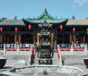 平遥大戏堂的北面就是城隍庙,城隍庙是平遥最早的道教遗存建筑物,里面的建筑风格清朝式样,屋顶覆盖的琉璃瓦,色泽鲜艳,黄绿相间。