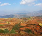东川红土地离昆明市不远 一般去玩一天也就够了 因季节不同种植的农作物不一样 因而呈现出的色彩也不一样 红土地 美轮美奂 是一个很值得去一游的地方 只是会有几个当地的大妈站在免费的观景台前缠着收费