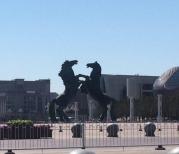 康巴什看了蒙古族的雕塑!因为是被亲戚拉来参加的,所以没逛街也没去鄂尔多斯店,更别说吃当地小吃了。还有那里的免税店都️去逛,都给我留下了深深的遗憾!我要下次还去,留个念想。 广场️二维码供游人扫描自行获️讲解。雕塑大而不突兀,附近就是蒙古包式的警卫室和鄂尔多斯博物馆,我错过了博物馆!