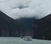 早上登船继续上行游览瞿塘峡(长度最短、最险峻),通过峡口“夔门”(天下雄)景点,只见两边高大垂直的山体岩壁临江夹峙,犹如一道大闸门立于江面,的确非常挺拔雄伟。