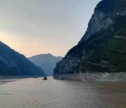 瞿塘峡,三峡的第二个峡谷,由于是枯水季节,江面上有一节裸露的岩石。两边的山峰高低错落有致,非常的险峻。这么陡峭的山峰,还有建筑,不得不佩服人类的伟大。
