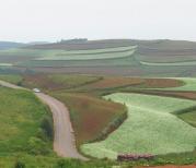 东川红土地位于昆明市东北,因土壤里含铁、铝成分较多,就形成了炫目的赤红色彩。我是九月初去的,那时白色油菜花开得正浓,配上红土地本应该也极美,但那两天都是下雨,可见度很差,拍出的照片不理想。以后还会再去。