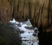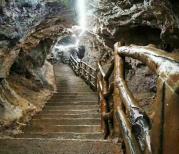 通灵大峡谷有着独特的地质条件,穿过五光十色的溶洞,慢慢下到谷底,再沿着溪流逆行而上,就来到它的源头——通灵大瀑布,更神奇的是瀑布下面还有一个岩洞,进到里面好像水帘洞一样,非常凉爽。