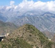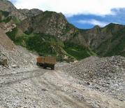 真实的独库公路开始显露出了本色,完全没有一块是完整的路面,由于前几天的雨水,路面变得很糟糕,不时被泥石流堵住险恶道路,疏通公路的工程车不时的施工着,我们的小杨,有公路走公路,有便道走便道,溪水拦路就直接开过去,真是翻山越岭,时速最多20多公里