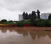 从内蒙古包头行车三个小时到鄂尔多斯,游览了成吉思汗园陵,园陵都是一样的,介绍加雕塑……全国各地几乎是千篇一律的,就是主人公不同……这时老天淅淅沥沥飘着小雨,加件外衣还感觉到冷,但是团队里团友们的互相照顾给了大家温暖!