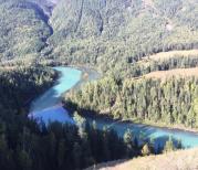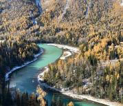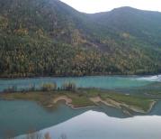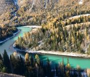 月亮湾是喀纳斯三湾之一,据说会随喀纳斯湖水变化而变化,喀纳斯河床在这里形成“S”状,迂回蜿蜒于河谷间,水面平波如镜,被称之为“月亮湾”。在上下河湾内发育两个酷似脚印的小沙滩,被当地人称为“神仙脚印”。月亮湾两侧峰峦叠嶂,古树参天,一年四季呈现不同的风景。