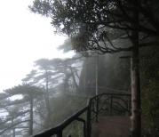 三清山,人很少但却感受到了完全不一样的景色。江西阴冷潮湿的气候经常形成雾气缭绕,穿越在这雾气之间飘飘欲仙,对面伟岸的山峰和不远处层层的松柏都在若隐若现中,踏着脚下或木制或石板的小路,似乎一步步走向云间。