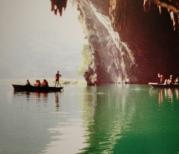 圣堂湖坐的是竹排游湖,湖夹在两座山中间,风很大,适合夏天游玩,山上有雾。湖水青,山峰险,这里的石也很独特,真的是世外桃源。就是船上没有导游,稍显无趣。去之前几天一直下雨,从上游冲下来很多垃圾。