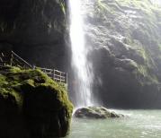 通灵大峡谷风景区位于靖西县城东南部32公里的湖润镇新灵村,古龙山水源林自然保护区的南端,距德天跨国大瀑布29公里。总长10多公里,通天彻地,灵动飘逸,犹如地球上一道美丽的伤痕。通灵大峡谷瀑布落差188米,这里有地下河、有瀑布,特别是在峡谷底部仰望瀑布异常壮观