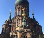圣索菲亚大教堂在中央大街东边一点,很有年代感,可以喂鸽子,门票不贵,但是要早点去,四点半就不让进了。附近没有什么好吃的地方,对面一个商场,六楼有快餐吃。有拍婚纱照的。里面基本上都是照片。