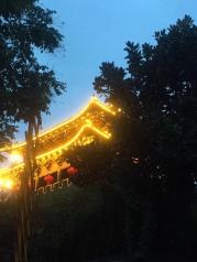 南山竹海我们步行到美丽的静湖, 坐小火车到达寿星广场,坐地面轨车到达鸡鸣村。鸡鸣村全是明清建筑,非常有特色,还有可爱的大熊猫,我们在鸡鸣村还看到射箭的地方“金家箭馆”,一行人进去好好的活动了一下筋骨,还有专业的人员进行指导,非常的不错。还到“南山酒肆”买了吃的,非常赞!