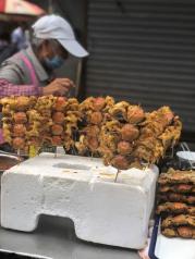 泰州老街离凤城河景区附近,长度并不长,主要售卖黄桥烧饼,肉脯。长沙臭豆腐,轰炸大鱿鱼,超级鸡排等这些全国各地喜闻乐见耳熟能详的小吃这里也有,另外还有上过舌尖的鱼丸鱼饼店,走过简单看了看,不知道该如何消费。