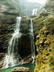 庐山三叠泉是突如其来进入你的眼前,没有一丁点前奏,从高及云端的山顶,猛然下落,撞到半山的巨石,轰然一声,震耳欲聋,溅水成雾,然后又撞到第二道石峰,轰轰烈烈,一泄而下,接近下面的水潭时,发现瀑布消失了,只留下一汪清泉。