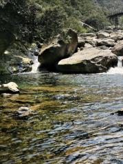 游玩庐山三叠泉时间不紧迫三个小时非常足够,山台阶比较高,爬完1600米真心很累,下山时腿有些抖,但是你到了三叠泉景色还是可以的,山上是真的很冷,但不得不说泉水真的很清真的是清澈见底。下山时会有滑索索桥玻璃栈道,但都很短,票价不高,有当地人买,可以游玩一下比较有意思,而且会比原路返回轻松,我们是自驾游,没买套票,可以直接开车到东门售票处,停车免费非常人性化。还有建议自己带点水和吃的,因为山上比较贵,是几个景点中最贵的一个点。