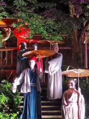 寻梦龙虎山,总体的设计概念很不错,步入式的大型景观秀,水路两路两段式表演。 我们大约7点左右到大门口,买好票坐摆渡车来到演出景点的门口。龙虎山的夏天又闷又热,整个人浑身都是汗,但是时间不到就是不开门。一旦进入后,还是被整个设计震撼到。灯光、舞美、音乐、和人走路的时间配合的刚刚好。一段演罢,走去下一个点的时候,刚到就开始了下一段的演出。 后半段上了竹筏,时间和景点都交给开船的船工控制。最后结束的时候,很多演员都会站在桥的两边欢送游客的离开。 整体表演都很不错。要是开门前的那段能更好的管理,同时配备通风散热的设备,防止人员中暑的话,这个表演可以打满满的五颗星。